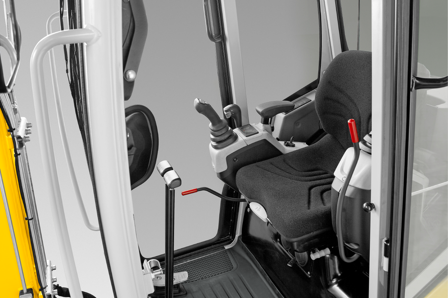 Die Baggerkabine kann optional mit einer zweiten Fahrertür ausgestattet werden. Dies erleichtert den Ein- und Ausstieg speziell auf beengeten oder schrängen Platzverhältnissen.