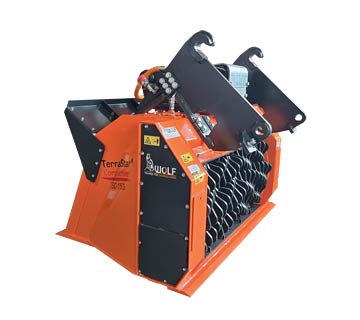Der Terra-Star® Compactline Schaufelseparator ist für Bagger zwischen 11 - 16 Tonnen und für Radlader ab 8 Tonnen konzipiert. Mit ihm sind schwere Dauereinsätze kein Problem mehr. Die Schaufelseparatoren der Baureihe Compactline sind ideal für den Straßen- und Kanalbau geeignet. So gehören Rückverfüllungen von Rohr- und Kanalgräben ebenso zu seinen Spezialitäten wie das Mischen, Sieben und Belüften von Erde und Kompost - insbesondere bei nassen oder torfigen Böden.