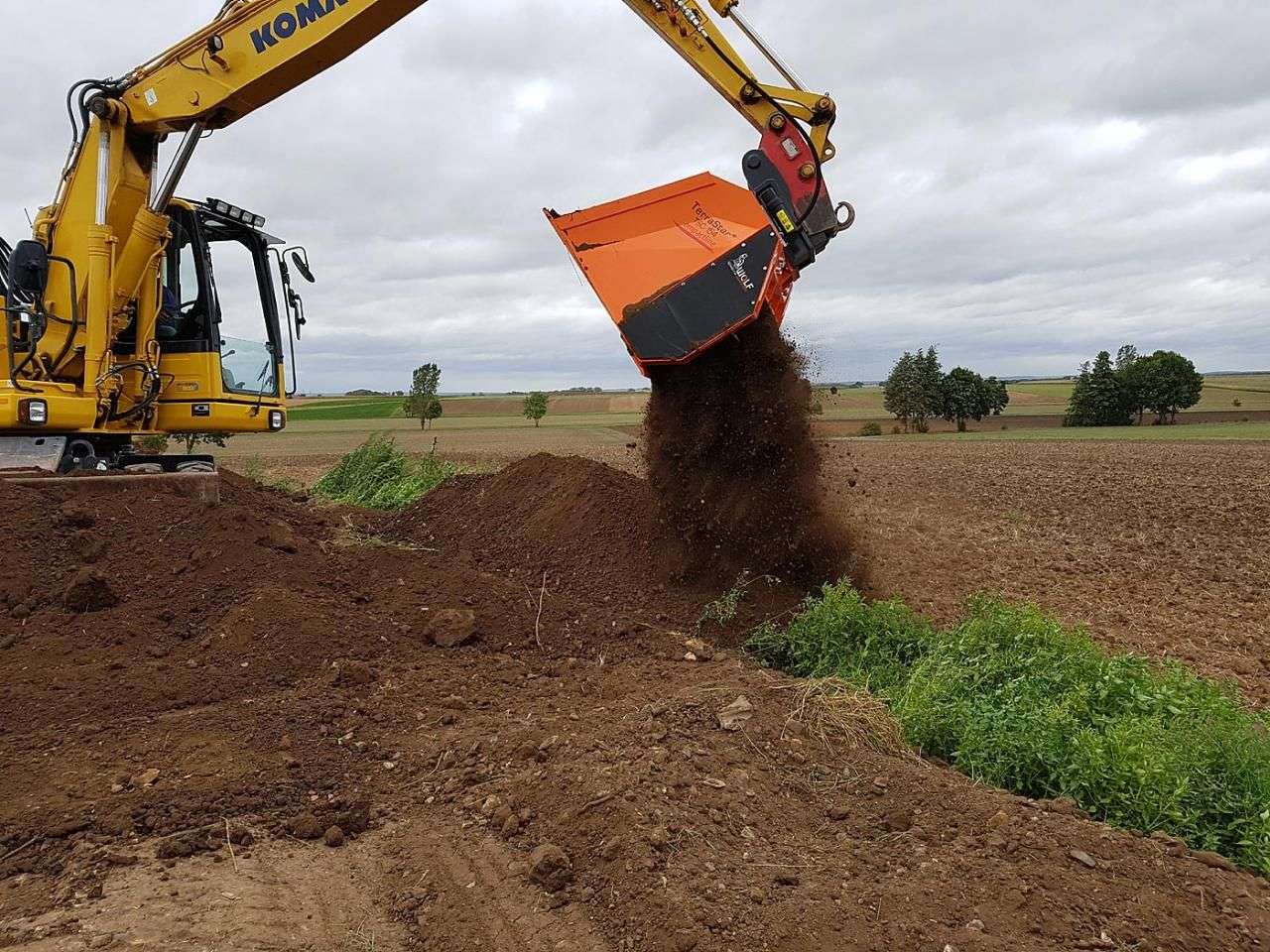 Durch das stabile Gehäuse aller TSC Sieblöffel ist auch der Anbau an Baggern auch deutlich über 20 t kein Problem. Wartungsfreie Lager und mit Fließfett gefüllte Kettenkästen, in denen die Antriebsketten laufen, runden dieses ganzheitliche Konzept ab. Somit muss der Terra-Star® nicht nachgeschmiert werden und ist wartungsfrei. Der Anbau an Bagger und Radlader ist auch kombiniert möglich und kann zu einem späteren Zeitpunkt nachgerüstet werden. Es ist kein Lecköl-Anschluß notwendig.